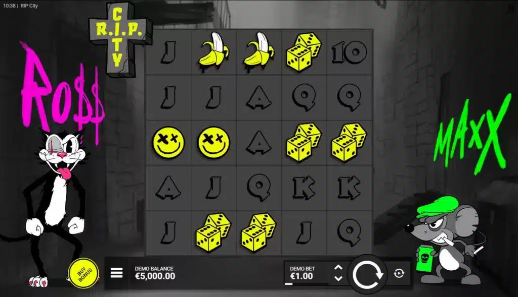 Rip City transports players into a darkly humorous city filled with mischievous cats and scheming mice. The 5×5 grid delivers chaotic fun, with special wild reels, multipliers, and two types of free spins for added depth.